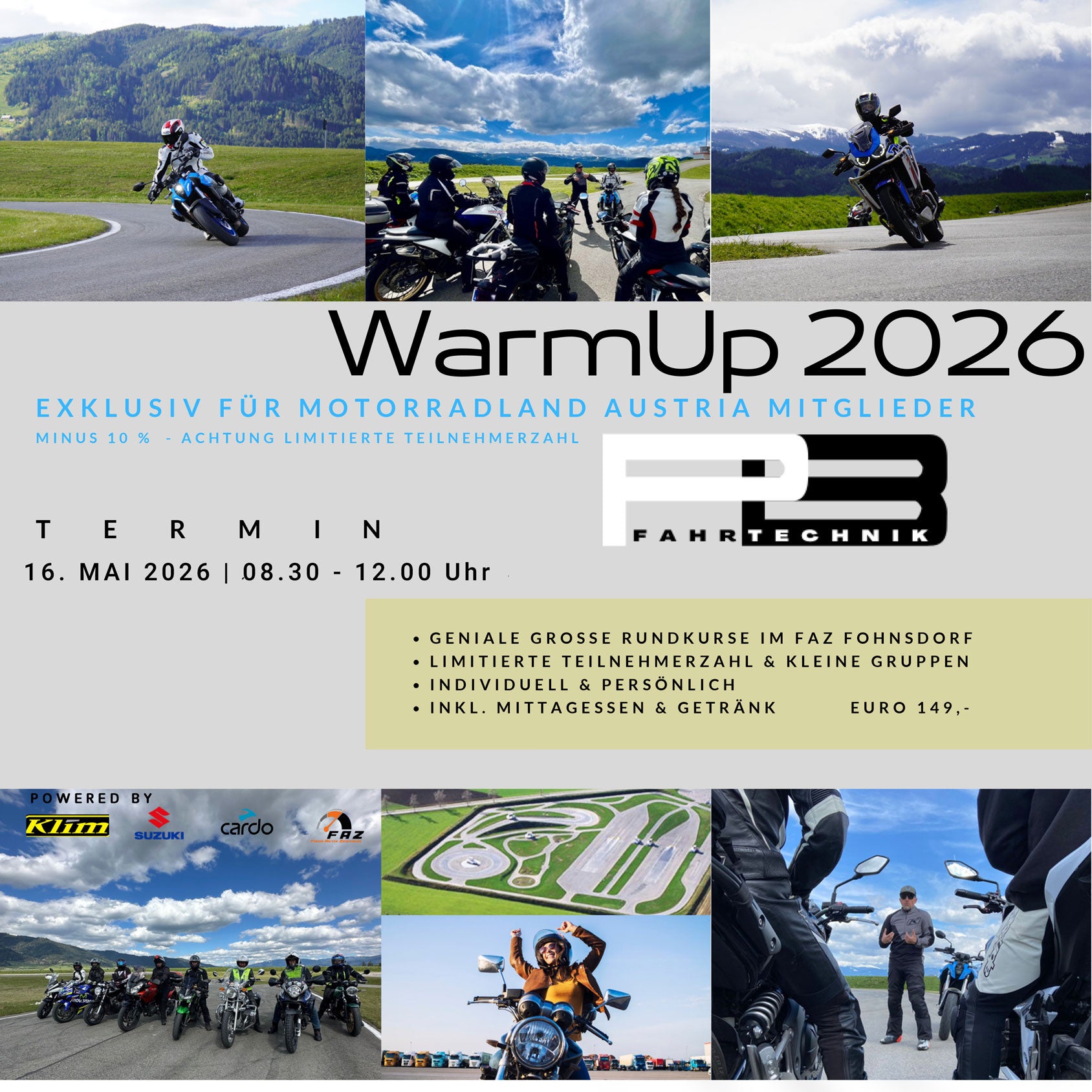 Starte sicher in die Saison! Exklusives Motorrad WarmUp Training von Motorradland Austria mit Motorrad-Fahrtechnikprofi Peter Bachmann.